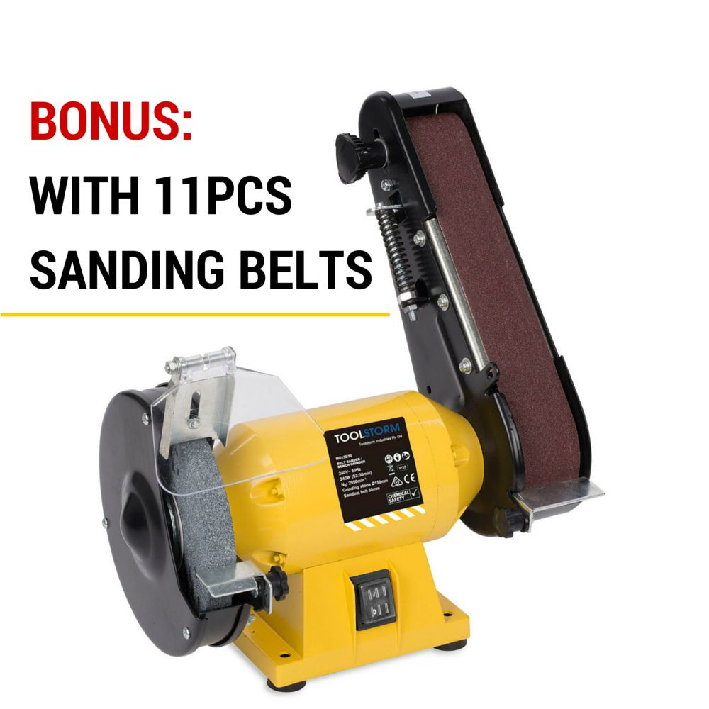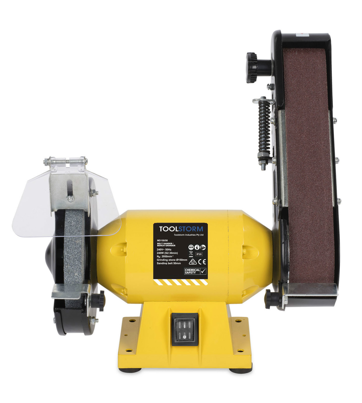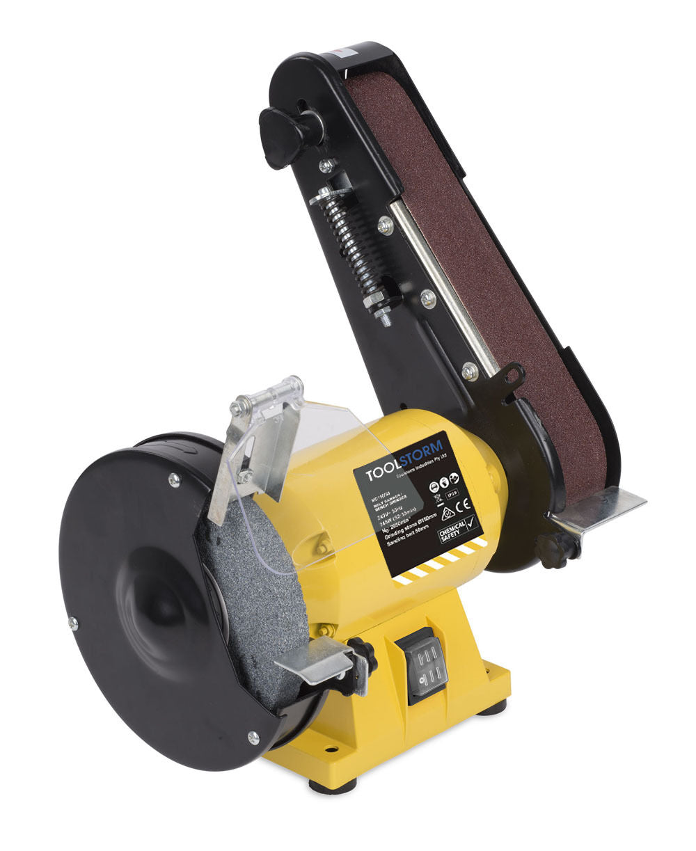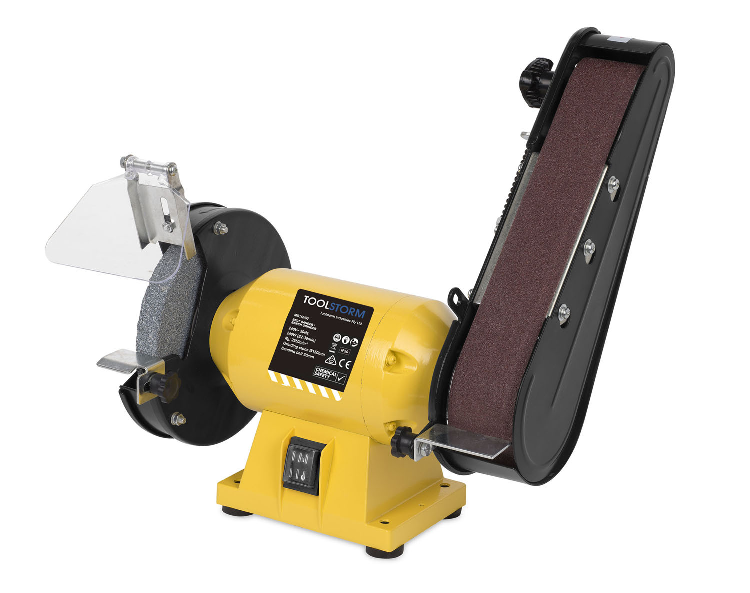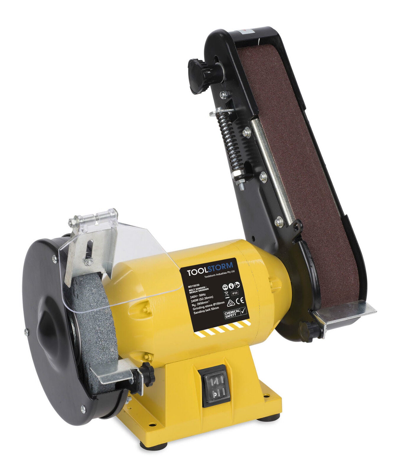 With both a grinding wheel and sanding belt, the 240W Toolstorm Bench Grinder / Sander offers maximum functionality in a compact and easy to use package,