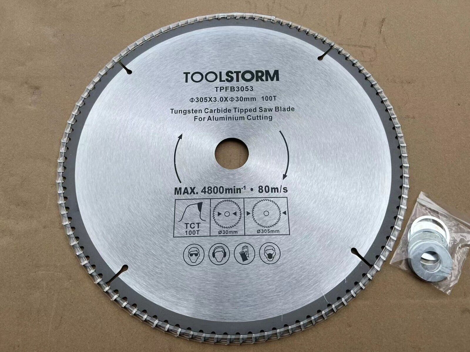 You will receive: 1X305MM BLADE 100T for Aluminium cutting+4 REDUCTION RINGS(25.4/20/16/15.88MM)