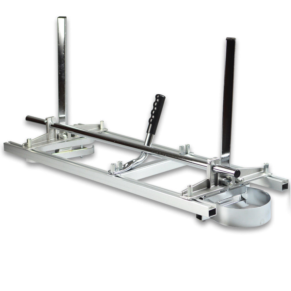Chainsaw Mill Suits up to 36"---Chainsaw mill 36" This chainsaw mill will convert your chainsaw into a portable mill/slabbing machine! It comes with an adjustable chainsaw bar clamp so you can mount your chainsaw fitted with a 16" to 36" bar. Simply clamp your chainsaw bar to the milling attachment and you now have your very own portable saw mill. DESCRIPTION Light but sturdy, this mill is designed to produce smooth-cut slabs from your logs and trees. It is made of heavy duty aluminium components and also includes a protective plate made of perspex. This tool has a parallel bar that can have it's distance adjusted from the chainsaw bar to provide different thickness slabs. The first slab is cut by using a couple of guide rails placed and secured onto the top of the log. You can then mill slabs between 1/2" to 13" thick. Notice: Includes instruction manual and operation guide detailing assembly of mill and how to use it, with colour pictures. Feature Aircraft grade 29mm square aluminum mill frame Square steel 25mm clamping pad brackets Tubular steel 22mm handle bars Protective perspex plate to guard against injury Strong clamp to hold weight of all brand name chainsaws Suitable for chainsaws with a bar length between 16" and 24" Specifications Condition: New Brand: toolstorm Package weight: 7 kg Net weight: 6 kg Maximum slabbing thickness: 1/2" to 13" (12.7 mm to 330 mm) ----28" bar+1x 28" chain SPECIFICATIONS