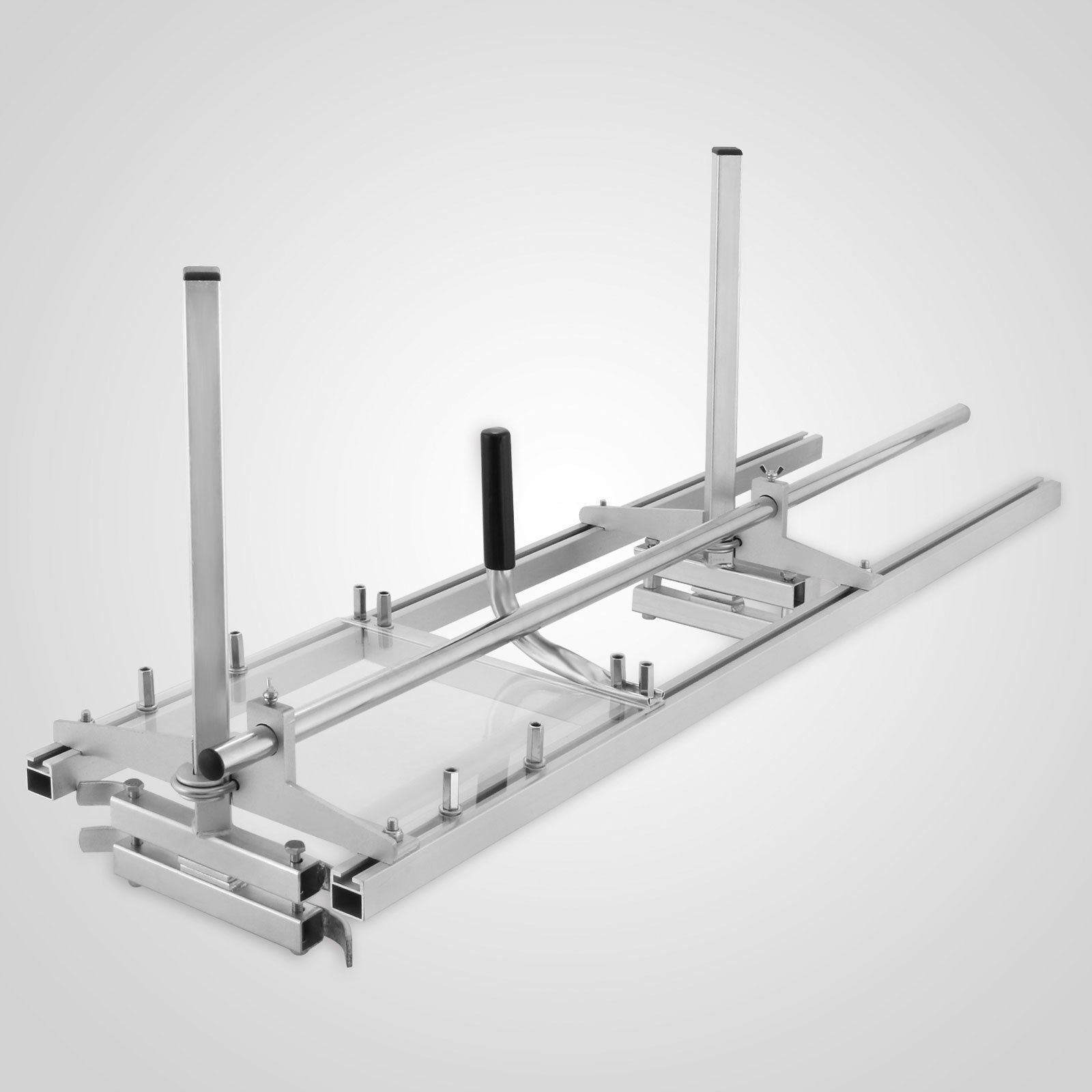 Chainsaw Mill Suits up to 48"PLEASE CHECK FASTWAY.COM.AU to check your address can be delivered or not. If fastway label is red/orange/green, you can buy and we will send by fastway courier, otherwise you can not buy this item, we will cancel your order. please note. This listing is for 48" chainsaw mill with 42" hard nose bar+one 42" chain combo. ----48" chainsaw mill This chainsaw mill will convert your chainsaw into a portable mill/slabbing machine! It comes with an adjustable chainsaw bar clamp so you can mount your chainsaw fitted with a 18" to 48" bar. Simply clamp your chainsaw bar to the milling attachment and you now have your very own portable saw mill. DESCRIPTION Light but sturdy, this mill is designed to produce smooth-cut slabs from your logs and trees. It is made of heavy duty aluminium components and also includes a protective plate made of perspex. This tool has a parallel bar that can have it's distance adjusted from the chainsaw bar to provide different thickness slabs. The first slab is cut by using a couple of guide rails placed and secured onto the top of the log. You can then mill slabs between 1/2" to 13" thick. Notice: Includes instruction manual and operation guide detailing assembly of mill and how to use it, with colour pictures. Feature Aircraft grade 29mm square aluminum mill frame Square steel 25mm clamping pad brackets Tubular steel 22mm handle bars Protective perspex plate to guard against injury Strong clamp to hold weight of all brand name chainsaws Suitable for chainsaws with a bar length between 18" and 48" Specifications Condition: New Brand: Vevor Package weight: 8.1 kg Net weight: 18 Lbs/8.2 kg Package length: 120 cm/48 in Box dimmensions: 123 cm x 33 cm x 7 cm Maximum slabbing width: 1100mm (43.3") Maximum slabbing thickness: 1/2" to 13" (12.7 mm to 330 mm) ---42" pro hard nose bar+1 chain combo(404 pitch 063 gauge 123drive links)