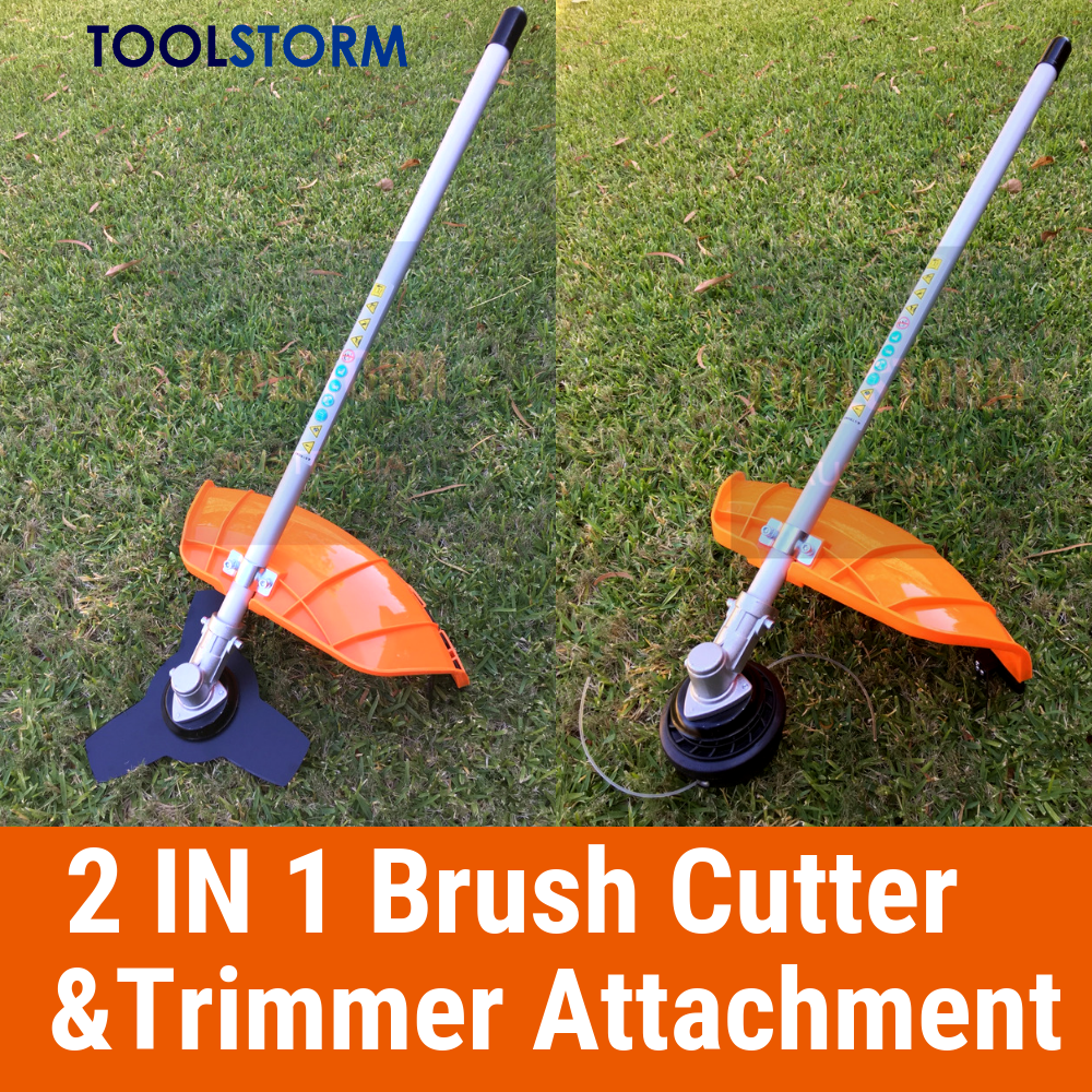 It will fit most of the brush-cutter heads commonly available, just take off the gear head/pole saw head/hedge trimmer head from pole, then insert our attachment on to same pole.