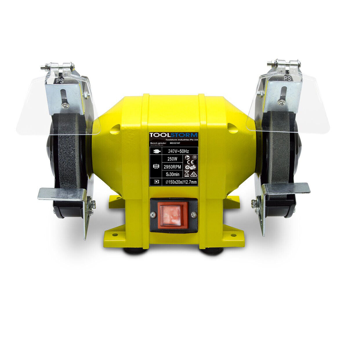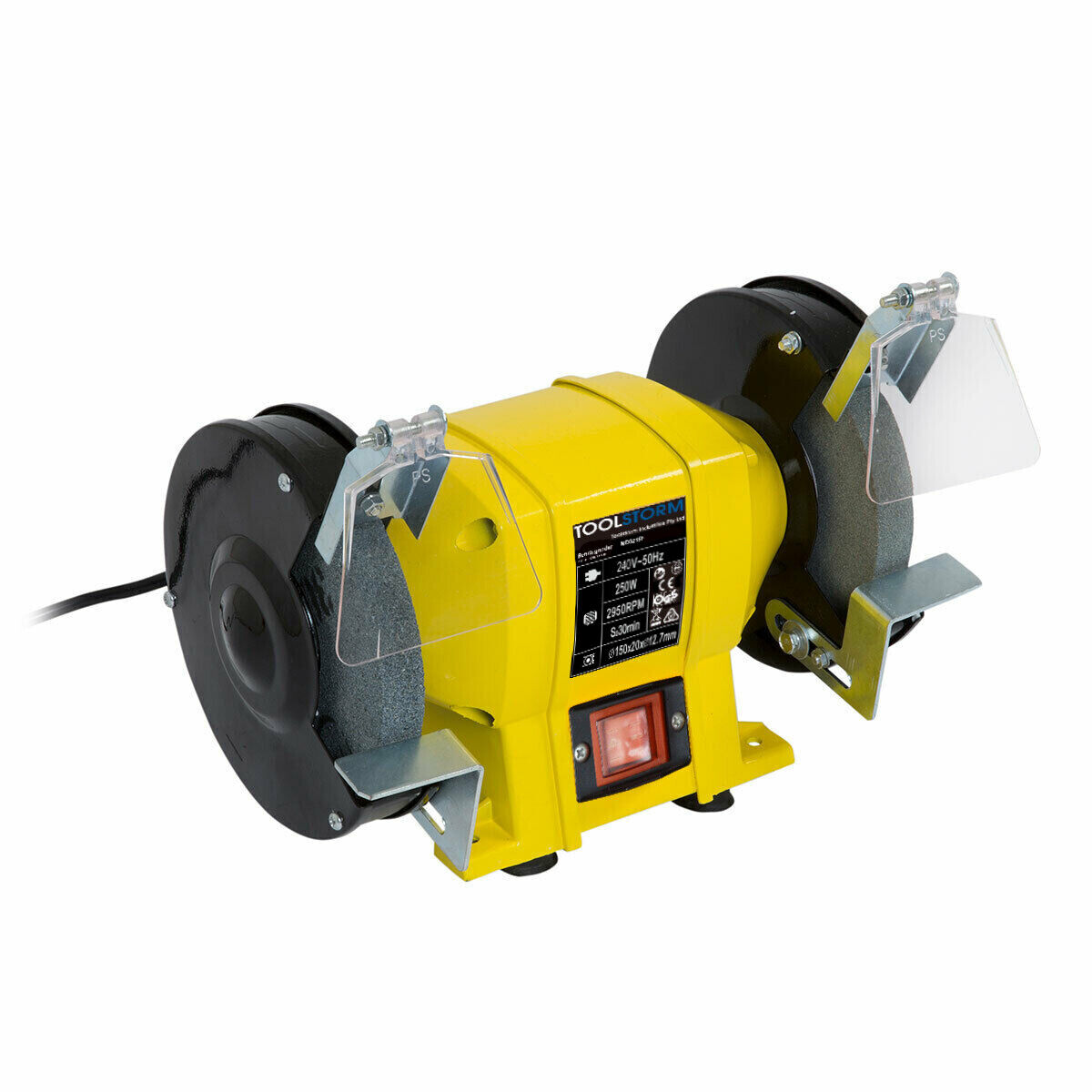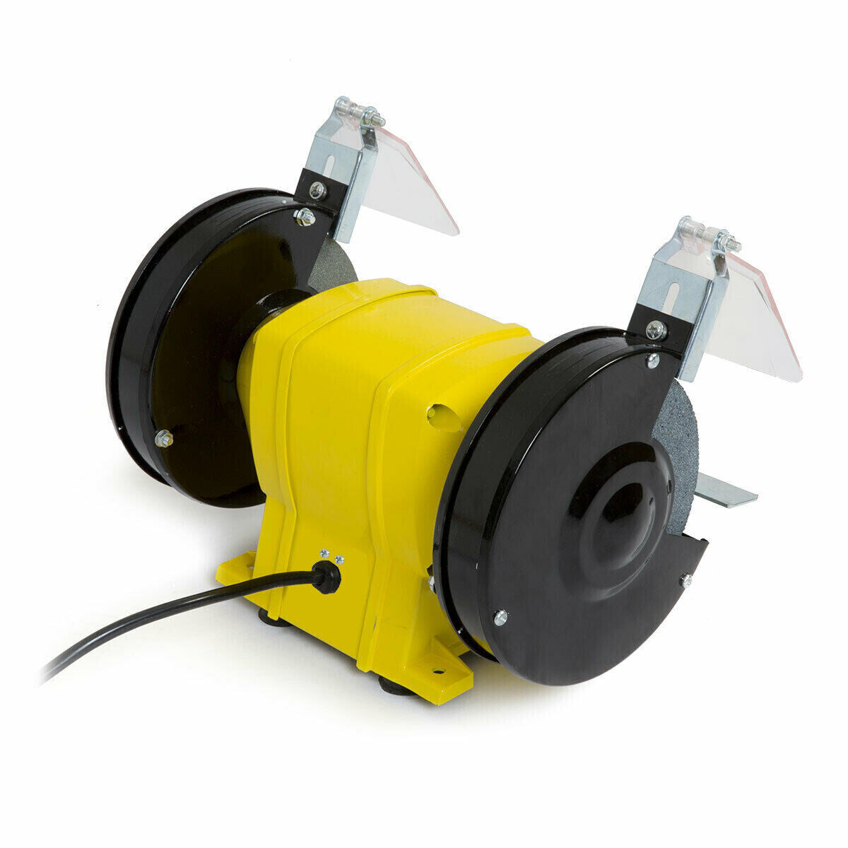 The grinder comes fitted with two grinding wheels, each 150mm diameter, 20mm wide and 12.7mm bore 12.7mm. The coarse one is manufactured from 36 grit & the medium 60 from grit.