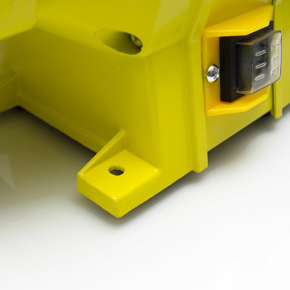 A cast alloy body of flat front design houses a 240v 250w induction motor,