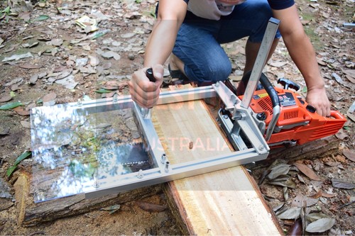 Adjustable side brackets fit on bar lengths up to 20” Cuts planks of lumber from 5mm to 300mm (0.20” – 12”) thick. Constructed of durable, aircraft aluminium & stainless steel. Attaches directly onto your chain saw bar with fast and easy installation with the included hardware and instructions. Safety perspex shield. Works for big or small jobs – will cut any length of lumber depending on your log length. Measures 50cm long x 32cm wide (19.69” long x 12.60” wide) A high quality tool will give you accurate and valuable lumber from your chain saw. Perfect for homeowners, woodworkers, carpenters and farmers.