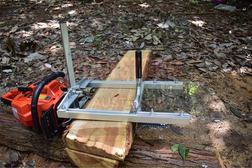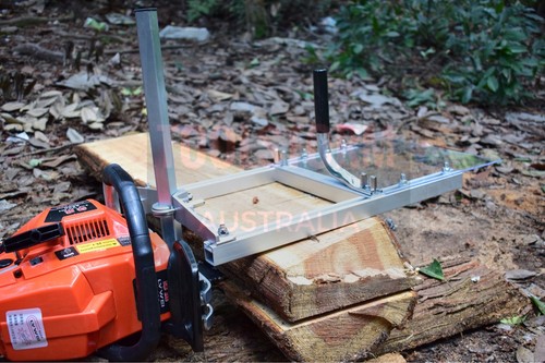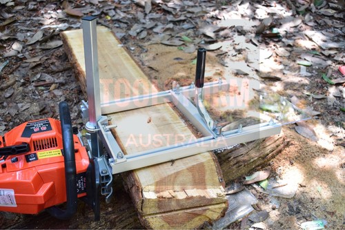 Chainsaw Mill Suits up to 20"This chainsaw mill will convert your chainsaw into a portable mill/slabbing machine! It comes with an adjustable chainsaw bar clamp so you can mount your chainsaw fitted with a 14" to 20" bar. Simply clamp your chainsaw bar to the milling attachment and you now have your very own portable saw mill. DESCRIPTION Light but sturdy, this mill is designed to produce smooth-cut slabs from your logs and trees. It is made of heavy duty aluminium components and also includes a protective plate made of perspex. This tool has a parallel bar that can have it's distance adjusted from the chainsaw bar to provide different thickness slabs. The first slab is cut by using a couple of guide rails placed and secured onto the top of the log. You can then mill slabs between 0.2"" to 12" thick.