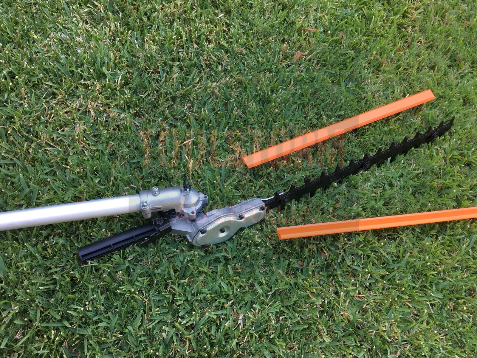 Hedge trimmer attachmentThis trimmer come from biggest garden tool manufactuer which OEM for Stihl,Makita,etc... The quality is the best. Perfect for residential or commercial applications. This listing is for a hedge trimmer attachment with pole and blade cover, fit Giantz. -Fully adjustable cutting head angle (0 - 270 Degrees) this allows you to approach branches at the correct angle for accurate pruning. -440mm cutting length. -Capable of upto 10mm cuts on soft material 5mm on hard. -Alloy Gear box and shaft -A high quality double-sided pole hedge trimmer attachment head. -With grease nipple:Allows you to regrease, endure the life of head. -Easily attaches to multi-tool unit motor heads, will fit Giantz brush cutter /multi tool.