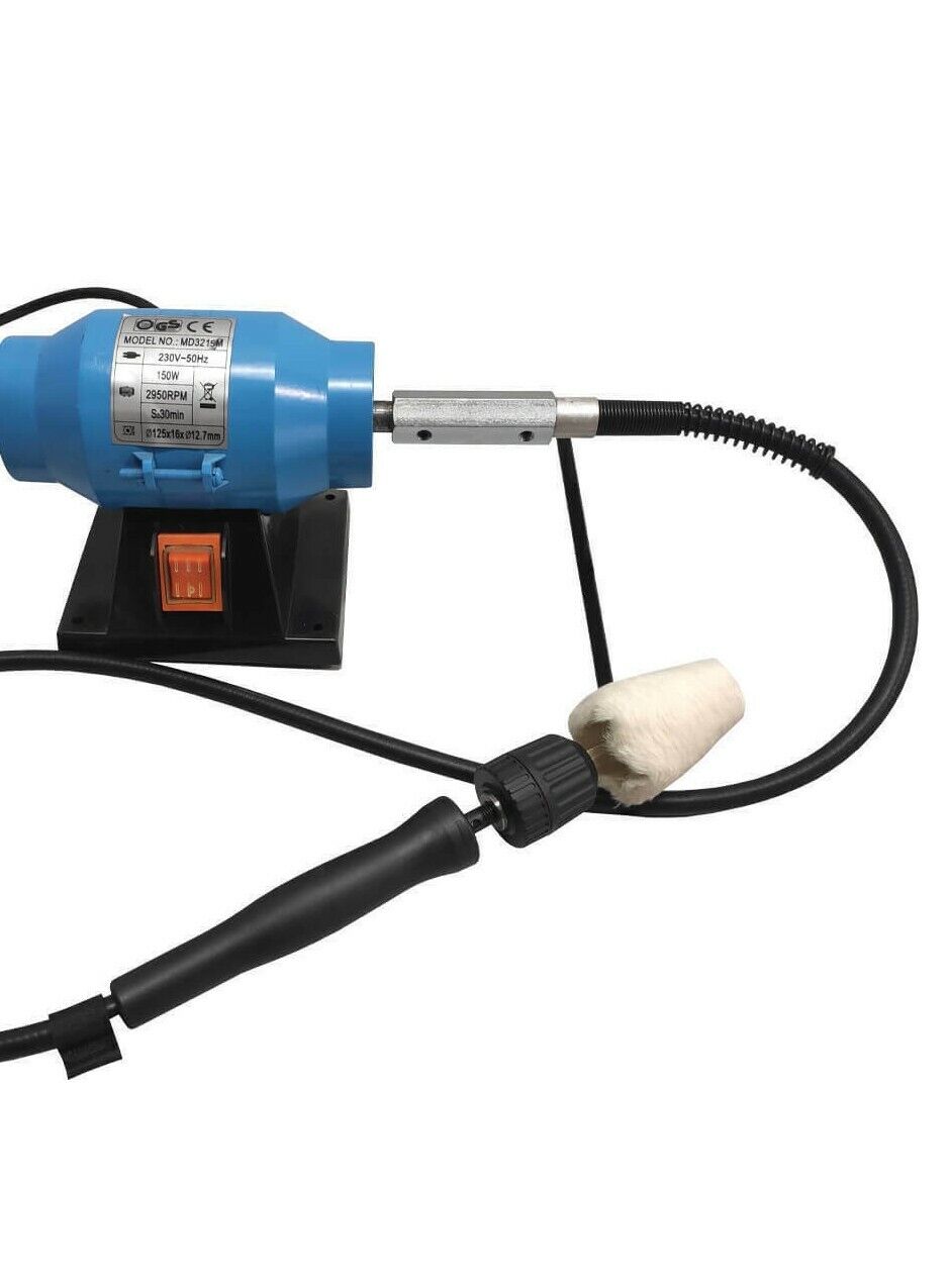 1 flexible shaft 6mm chuck and 4 mounted polishing wheels, 2 wire brush wheels.