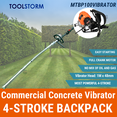 DescriptionIf you work with concrete this is a must have for all concreting work, this 4 stroke unit is quiet and easy to use, no premixing fuel required. This item is with most powerful BACKPACK 4-STROKE engine in the market, with Japan design and management, it is the best 4-stroke motor. Features: -Comfy padded backpack & Anti-vibration system. -Class-leading power of 4-STROKE BACKPACK engine 40CC, with TOOLSTORM Easy Start System. -No mix oil and gas -Full crank engine, much smoother starting and running. -Patented direct-air-injection carburettor
