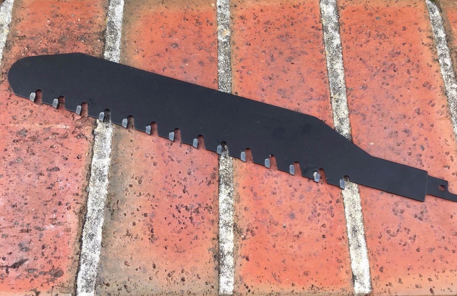 With strong carbide teeth this reciprocating saw blade cut clay bricks and autoclaved aerated concrete blocks.