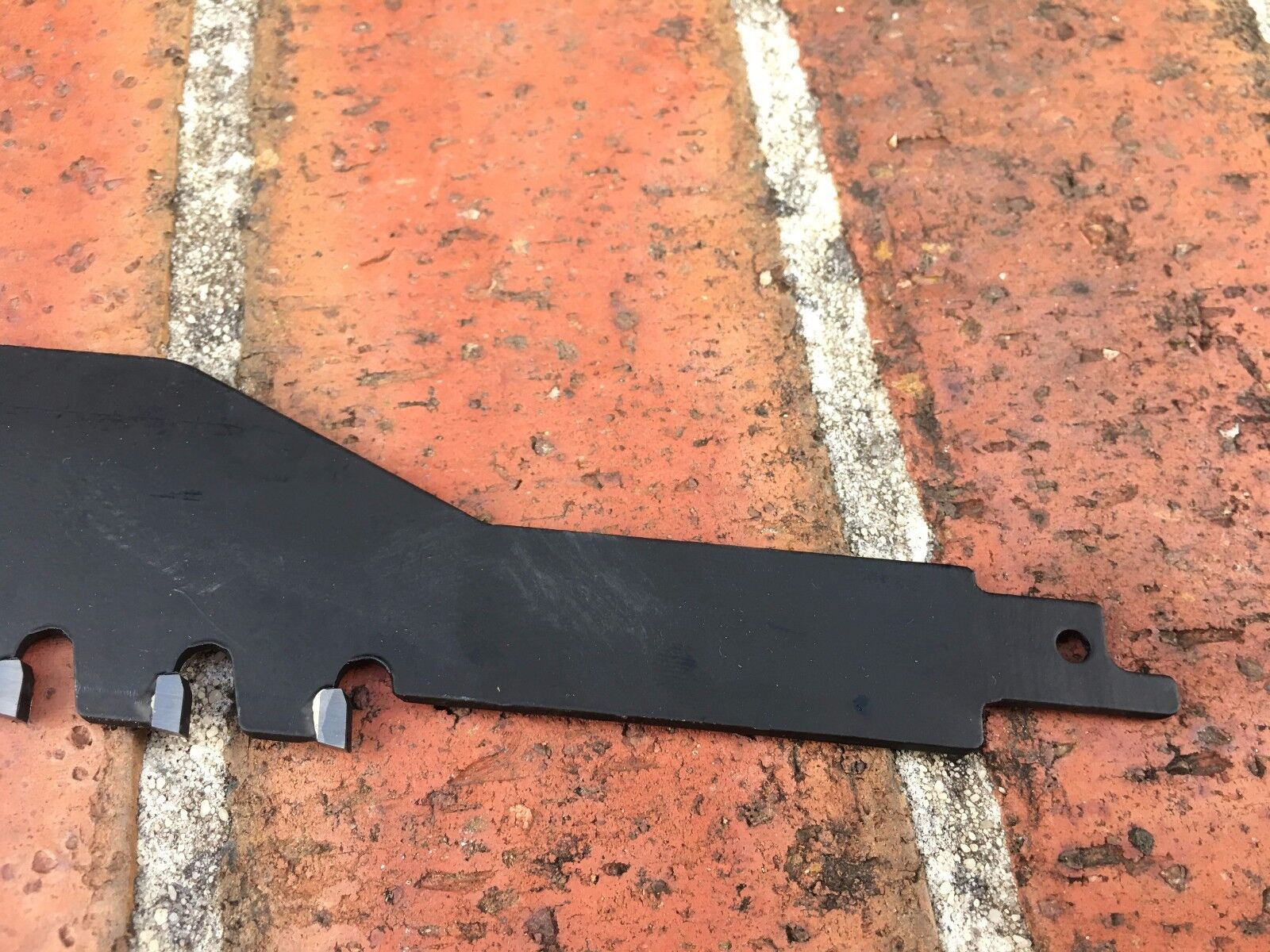With strong carbide teeth this reciprocating saw blade cut clay bricks and autoclaved aerated concrete blocks.
